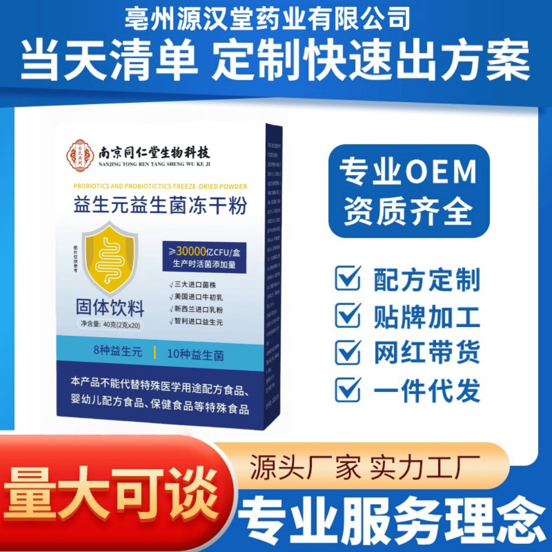南京銅仁堂プレバイオティクスおよびプロバイオティクスフリーズドライパウダー Douyin、Kuaishou、Pinduoduo人気商品卸売およびOEM