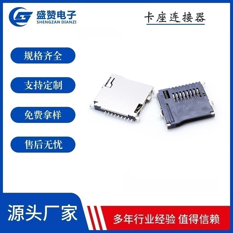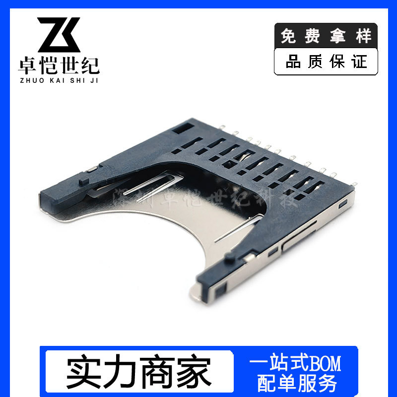 カードリーダーSDカードホルダーSMTパッチ式簡易型全プラスチック10p黒色耐高温SDメモリカードホルダー卸売り