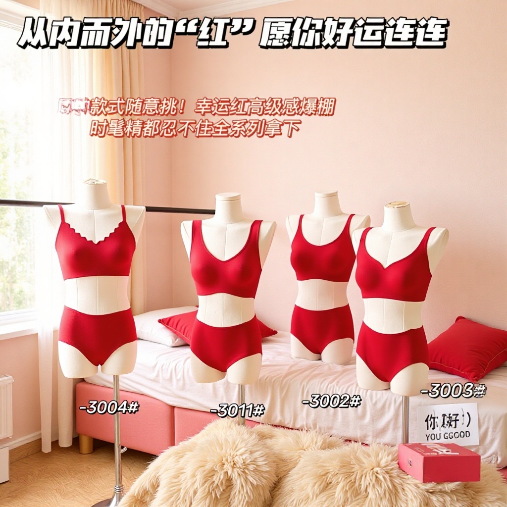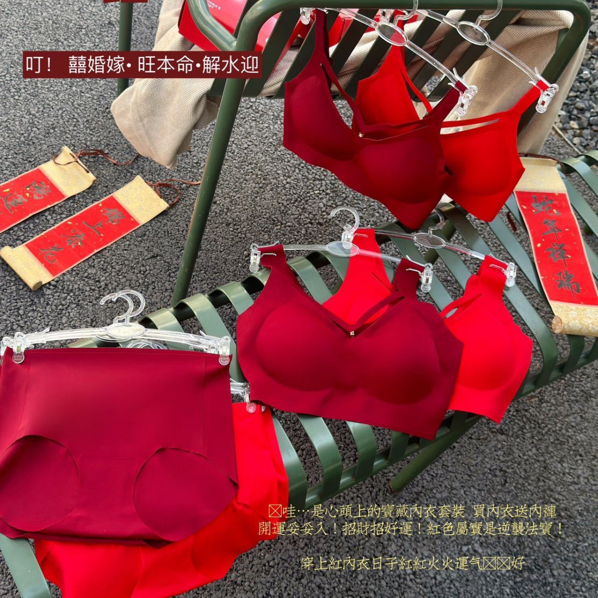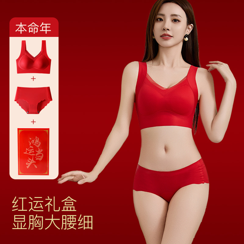 本命年大紅下着女性セット零束縛無痕無鋼輪一体固定杯美背文ブラジャー
