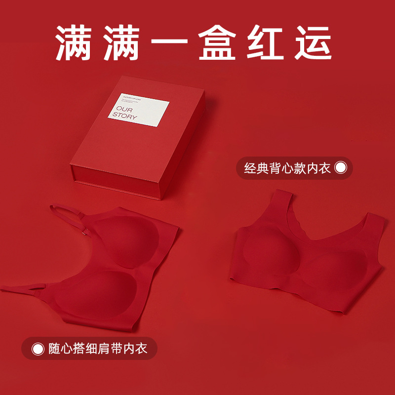 U8166大紅箱入りブラジャーセット女性本命年新年無痕一体式固定カップ快適下着