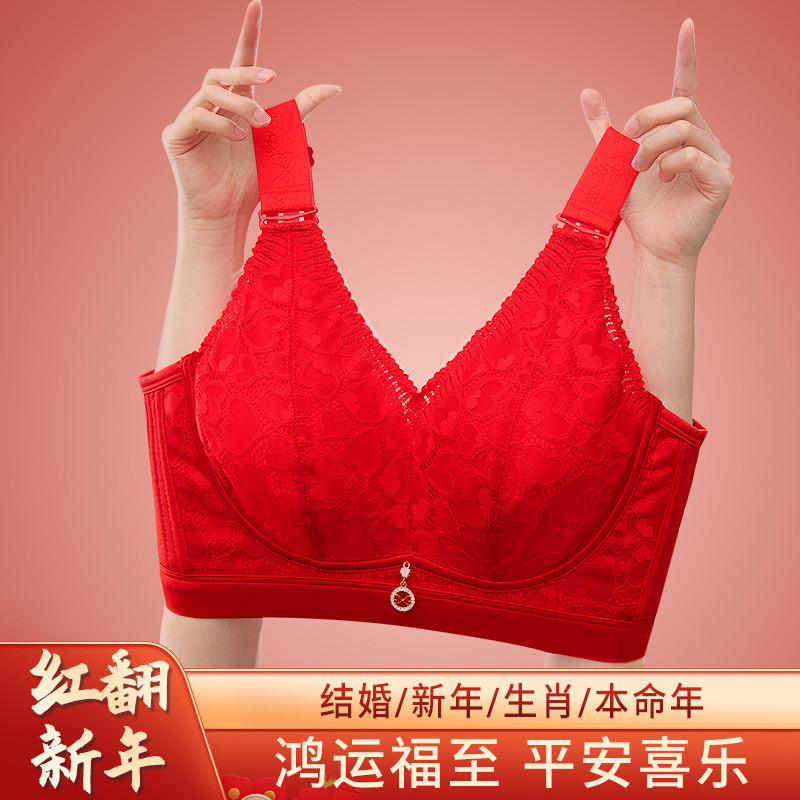 干支の花嫁の女性用赤い下着、小さな胸を押し上げて大きなブラジャー、スチールリングなし、副胸をサポートし、垂れを防ぎます。