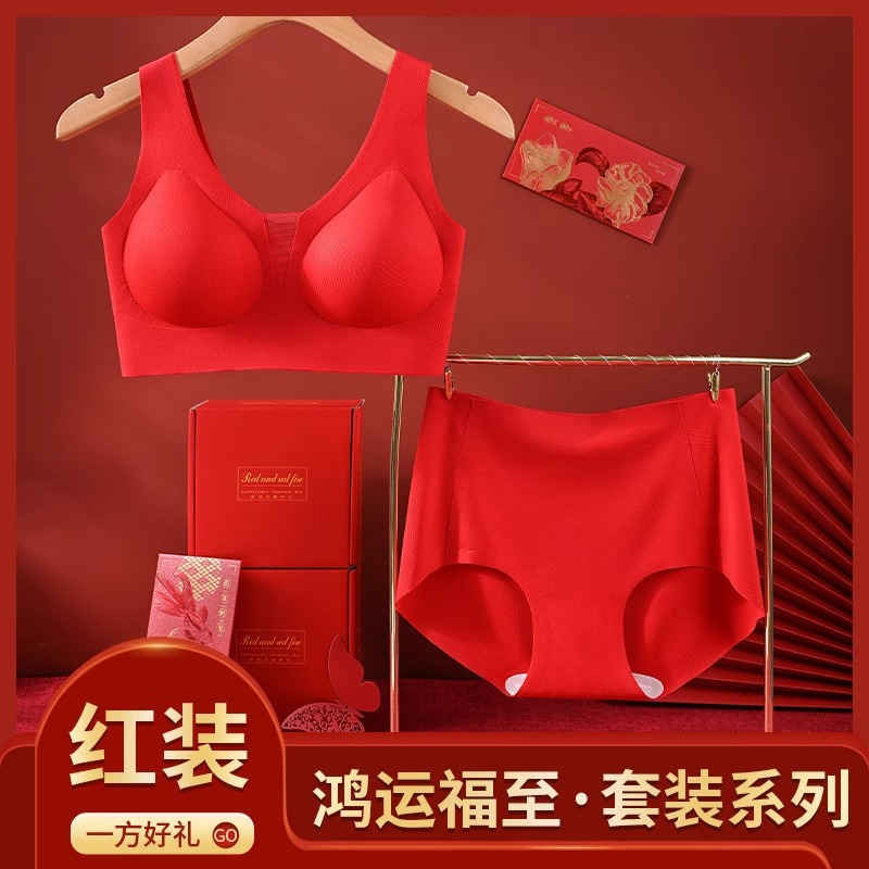 新作の干支年用下着セット 女性用シームレスサポート美背下着 結婚式花嫁用大紅色ギフトボックス入り