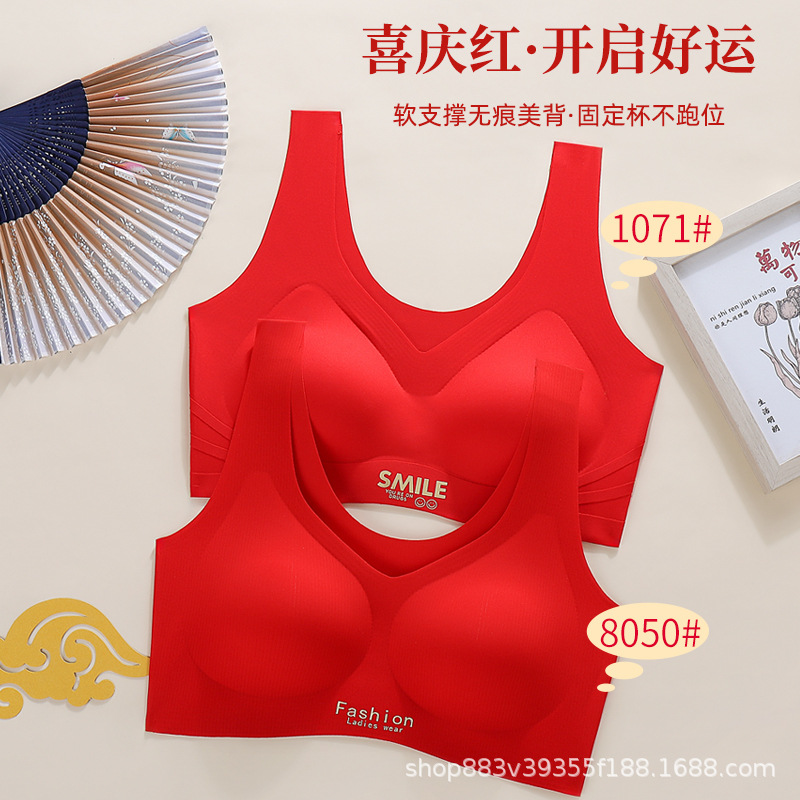 本命年大赤色無痕ブラジャー下着セット女性無鋼輪が集まって快適な結婚新年ブラジャー