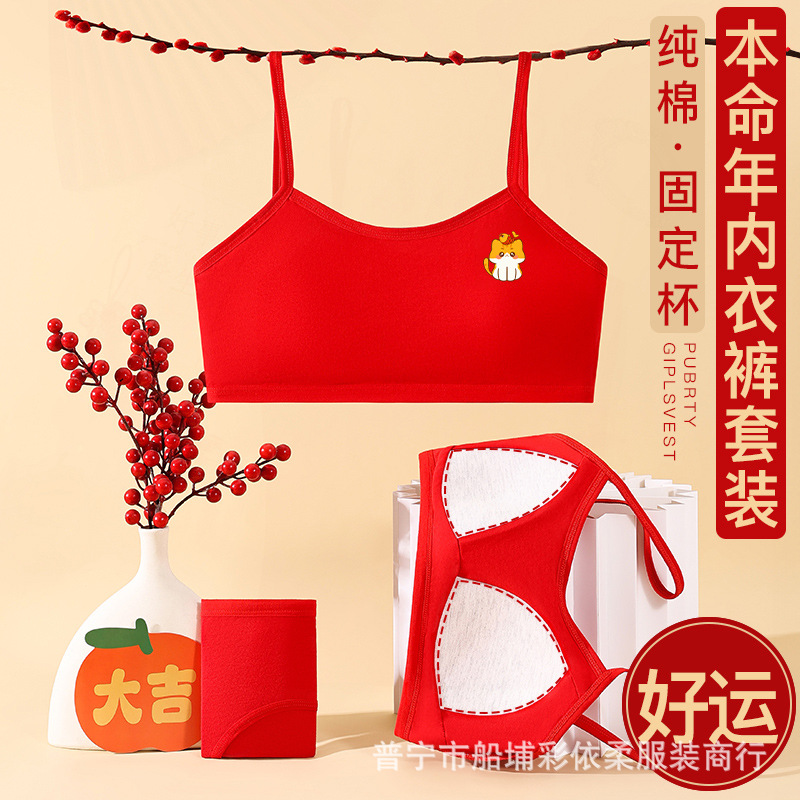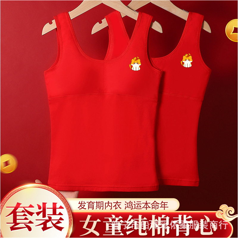2026年女児の干支年用赤い下着、発育期の女の子、中学生、年長児、学生向けの純綿ベスト