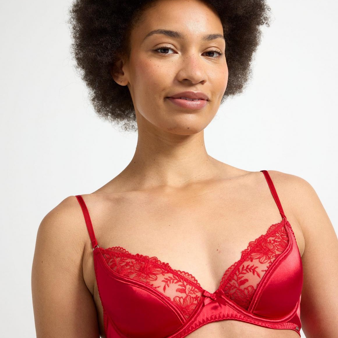 リンデックス大紅本命年ブラジャーElla mシルクサテン鋼輪ブラジャーセクシー上托レース薄綿下着