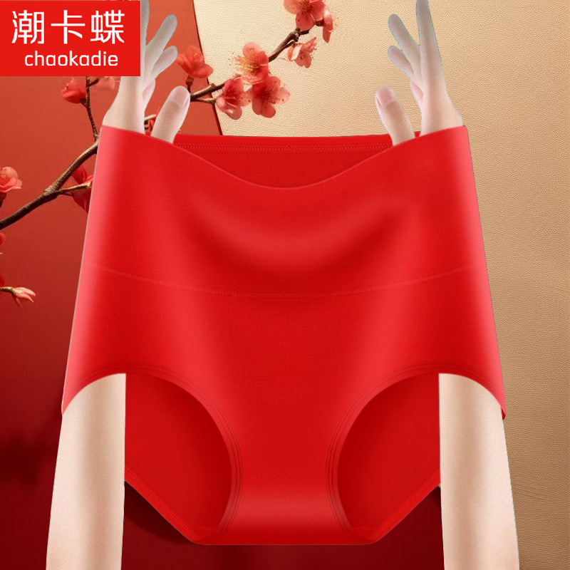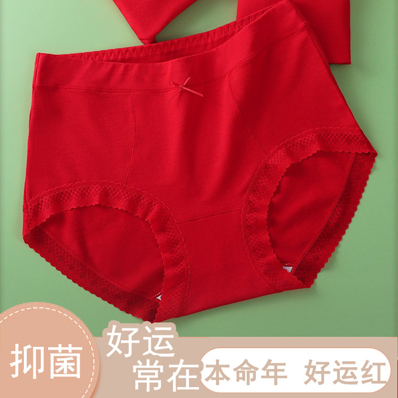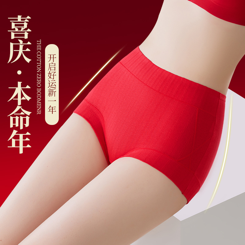 本命年女性用下着、純綿、大紅色、ハイウエスト、馬年、お祝いの赤色、お腹を引き締める、シームレス下着、女性用卸売