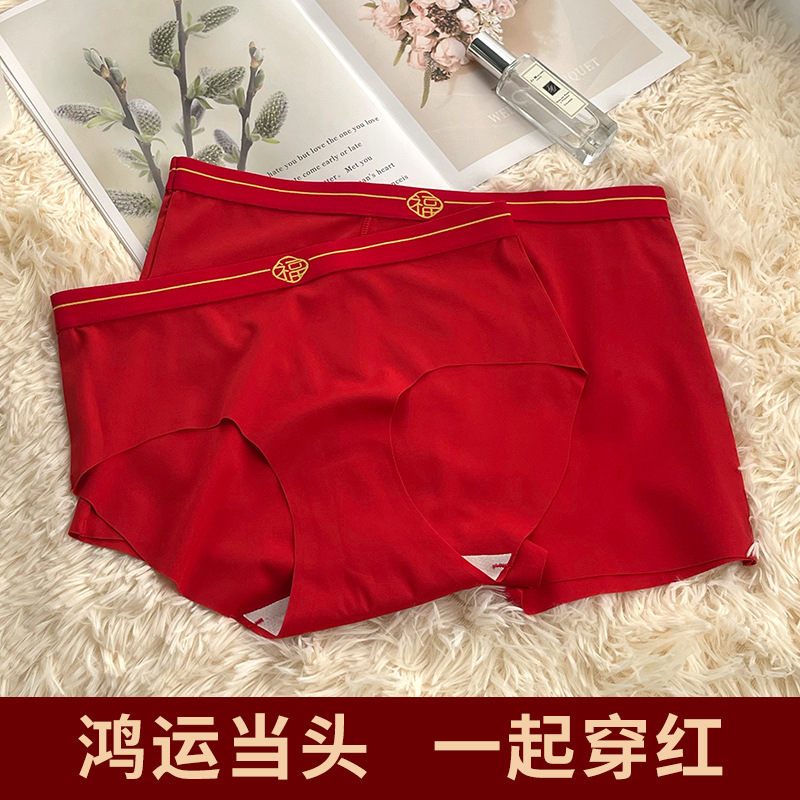 赤い下着の結婚のカップルの1対の2024の新型の赤い本命年の純綿の女子学生の三角のズボンの男性の四角のズボン