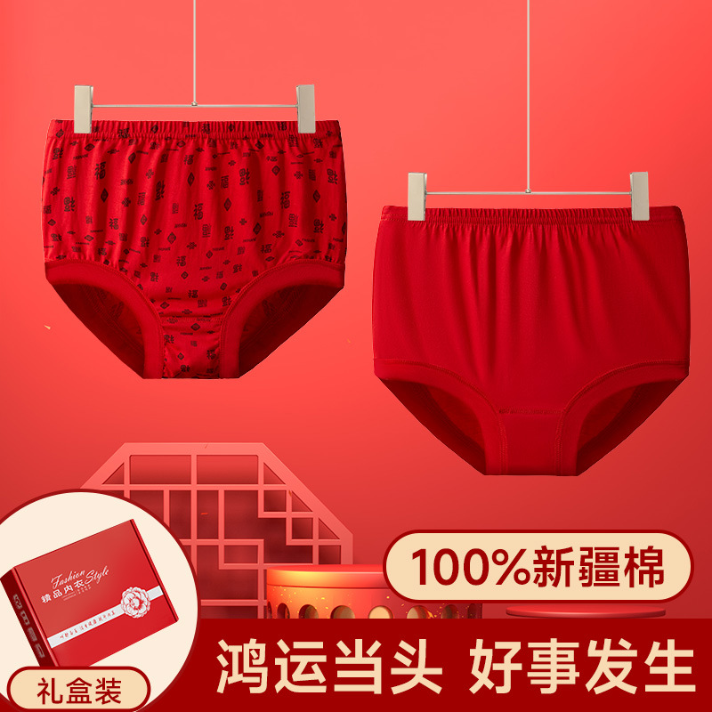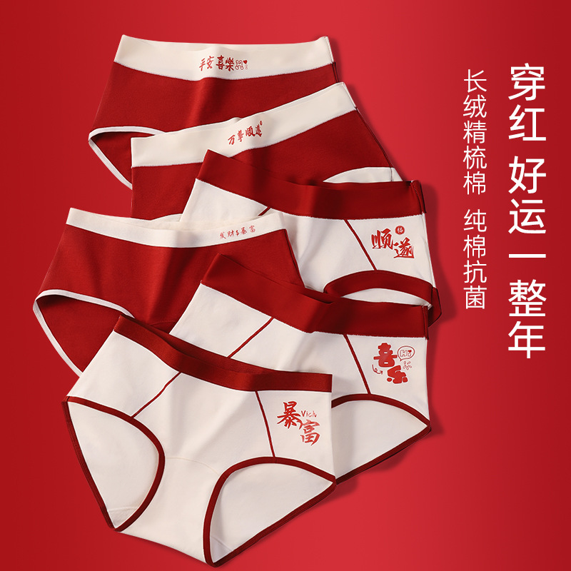 【独立服】本命年大紅祝い正月綿レディースパンツ中腰通気性女子三角パンツ