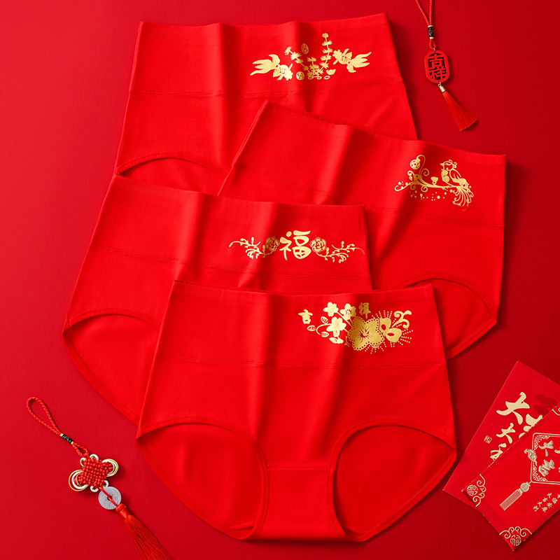 本命年A類赤ちゃん綿安可拉紅下着女性高腰無痕結婚ズボン抗菌绢糸パンツ