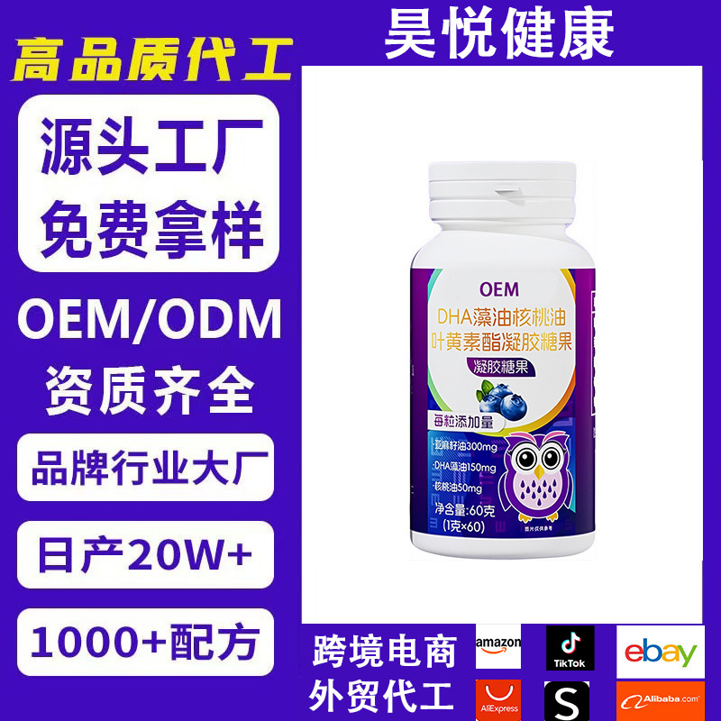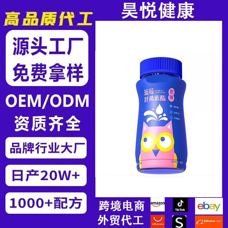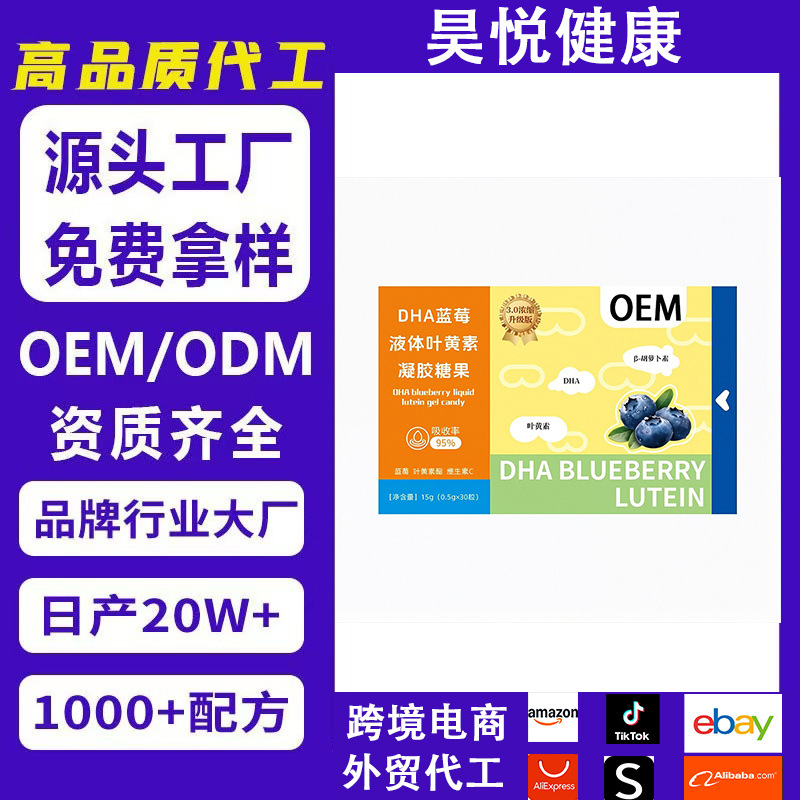 DHA ブルーベリー液体ルテイン ジェル キャンディー工場加工カスタマイズ OEM ルテイン ブルーベリー DHA