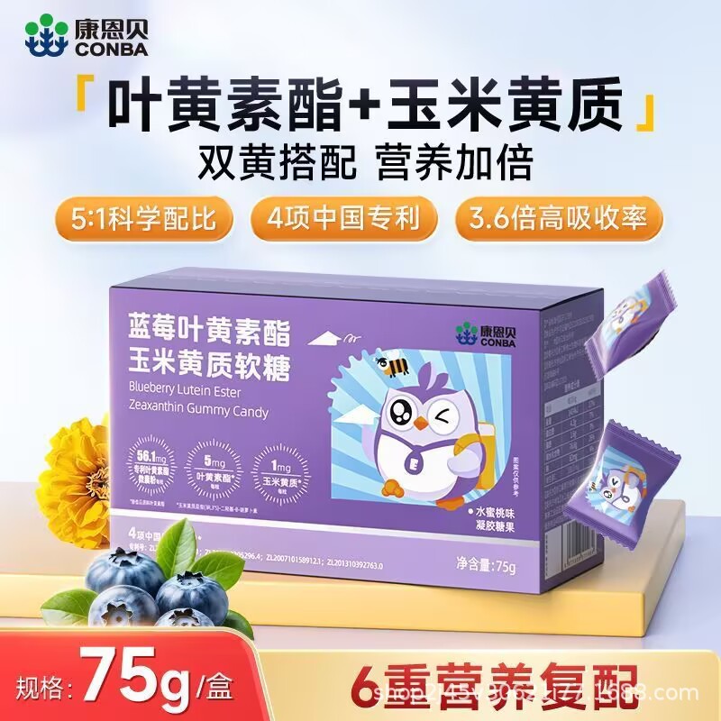 康恩貝ブルーベリー葉黄素エステルトウモロコシ黄質ソフトキャンディ成人青少年児童同旗艦店公式正規品