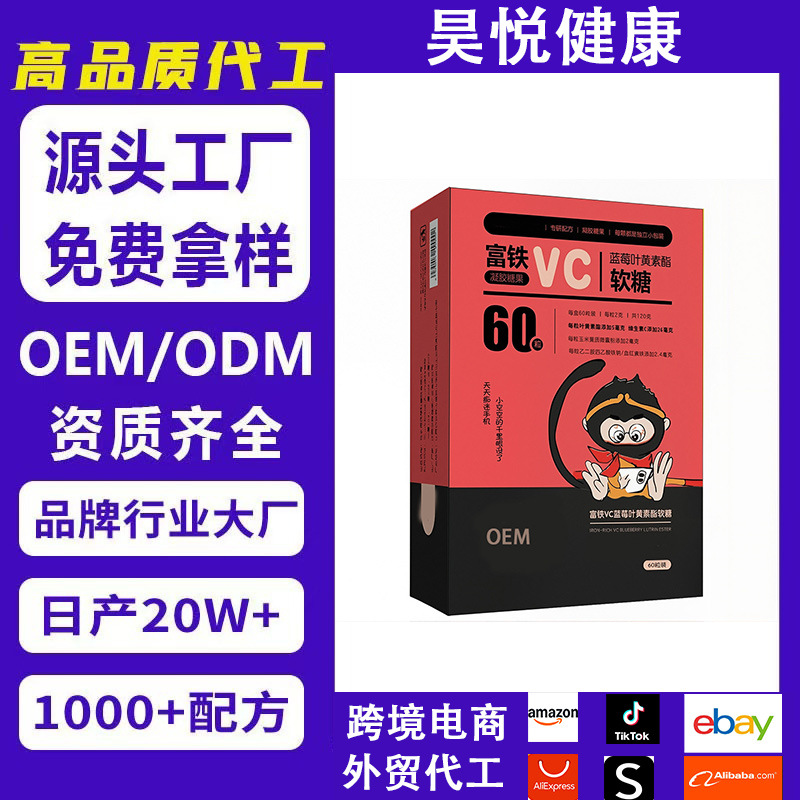 鉄分豊富なVCブルーベリールテインエステルグミ工場加工外国貿易OEMカスタマイズOEMルテイン鉄分豊富なVC
