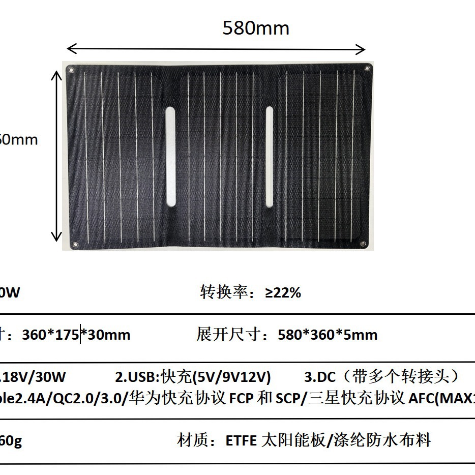 単結晶シリコン30w屋外ポータブル太陽電池充電板etfe折り畳み式太陽光発電板