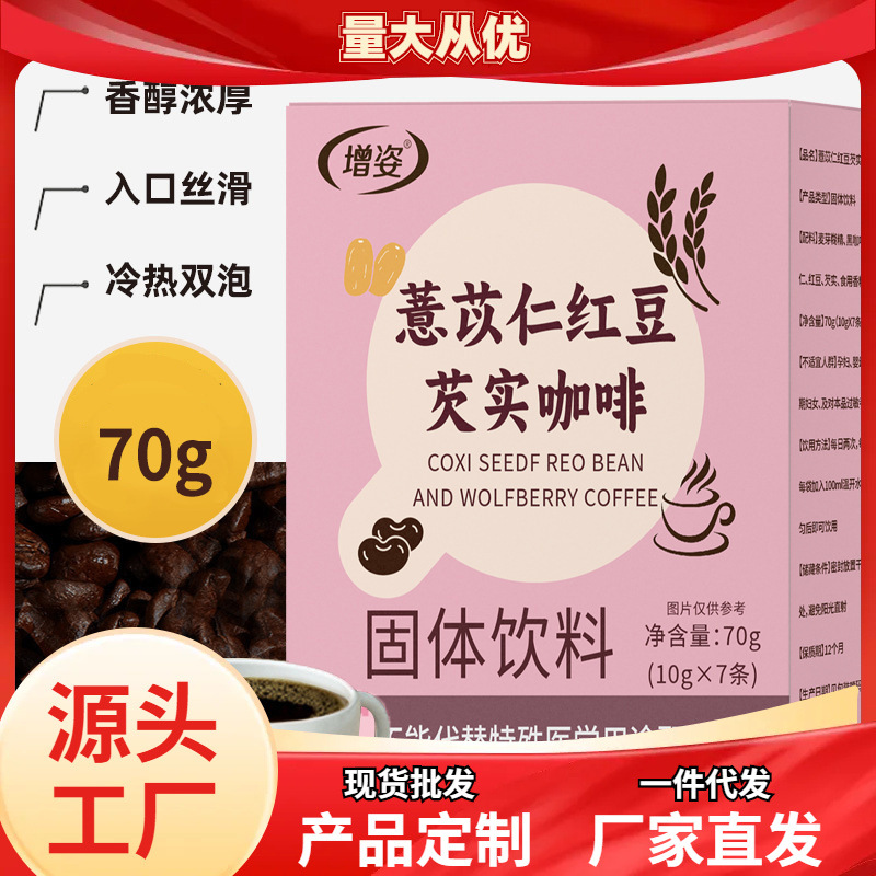 红豆薏仁芡实咖啡粉薏米粉祛正宗湿浓缩代餐速溶咖啡独立小袋包装