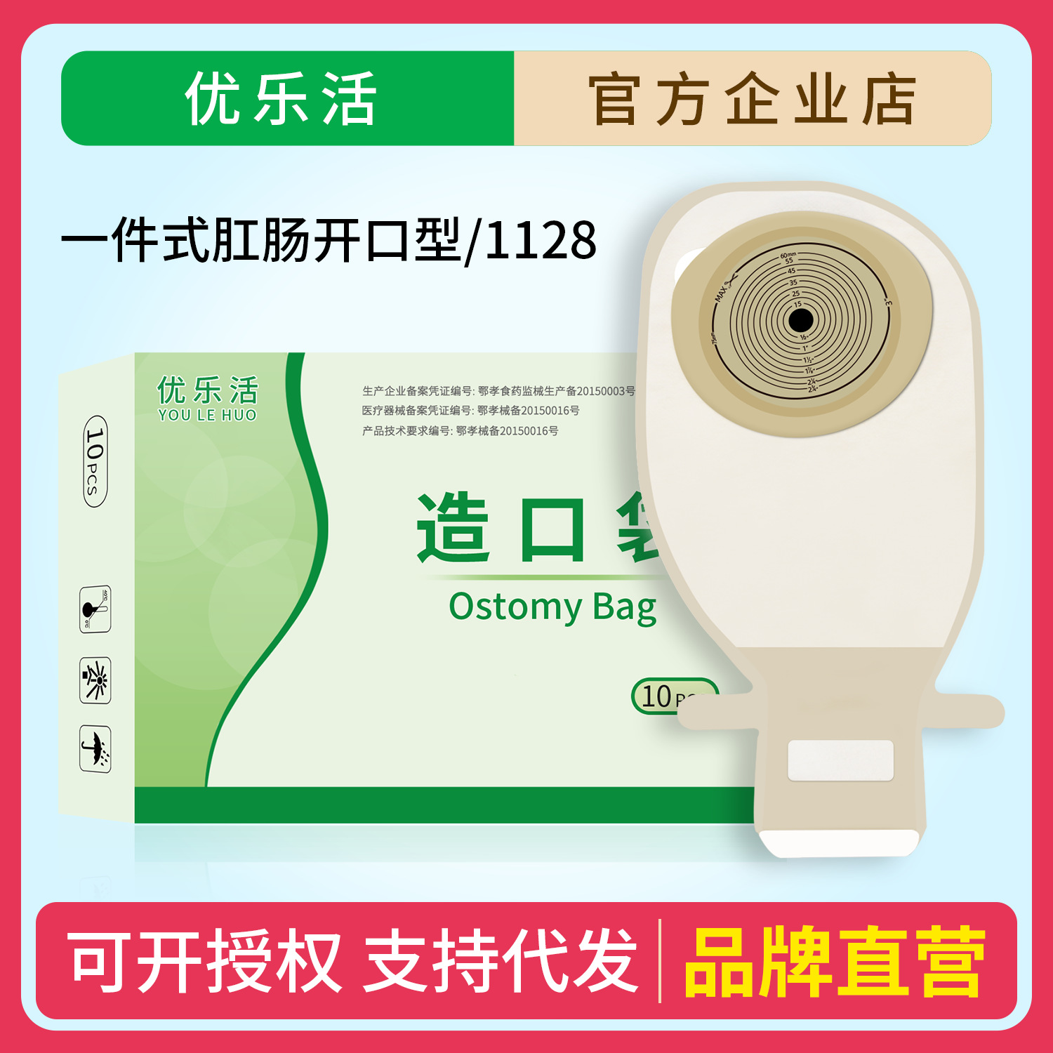 ユーラーホーク1128造口バッグ一体型医療用肛門ケア用品排便バッグ大型底板造口バッグ