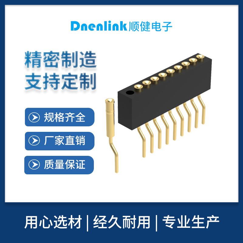 1.27ピッチpogo pinスプリング針座単列母座180度平面金メッキプローブ針コネクタ