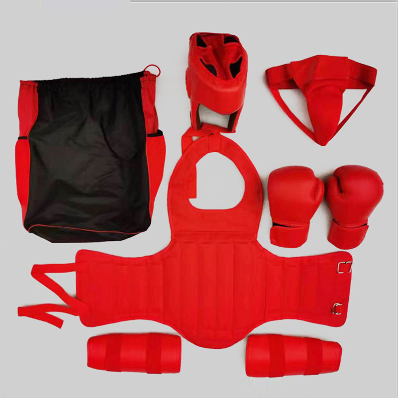カスタマイズされた卸売ボクシングおよびサンドア保護具セット、ボクシングおよび格闘技トレーニング、頭部保護、脚保護、胸部保護、股間保護セット