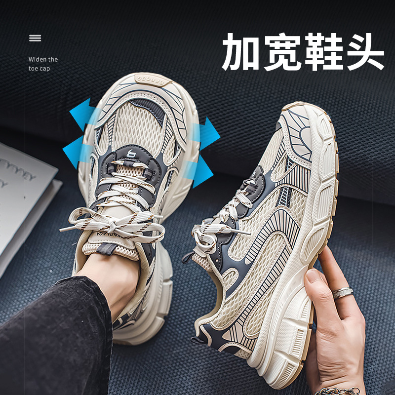 2025 春メカスタイルお父さん靴メンズ厚底レトロ国民トレンドメッシュ通気性向上多用途スポーツカジュアルシューズ