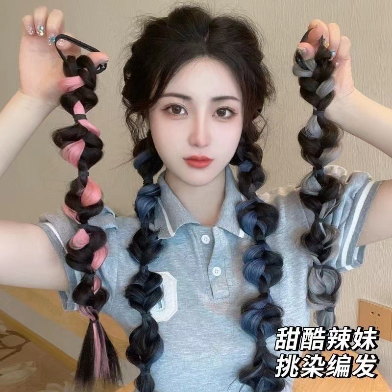 女性用ウィッグ、ポニーテール、ネットセレブ、ホットガール、ボクシング三つ編み、ヨーロッパとアメリカンスタイルの人工毛、バブル三つ編み、ツイストロング三つ編み、甘くてクールなダーティ三つ編み