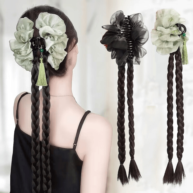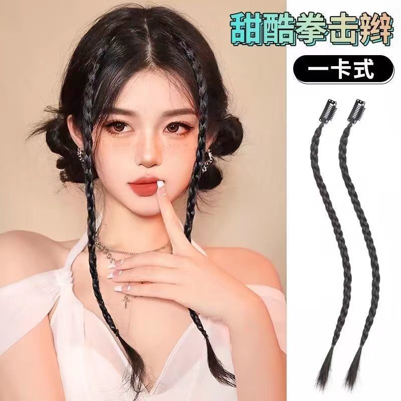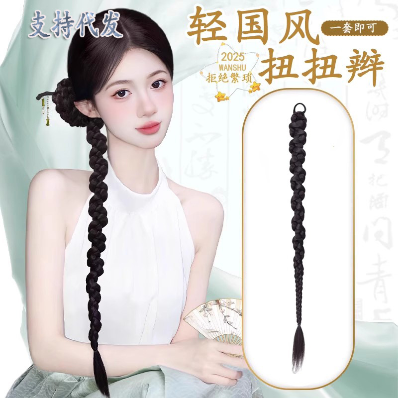 ネットセレブウィッグ、三つ編み、コスチューム、漢服、ヘアアクセサリー、ダンスヘア三つ編み、中華民国風、カード付き三つ編み