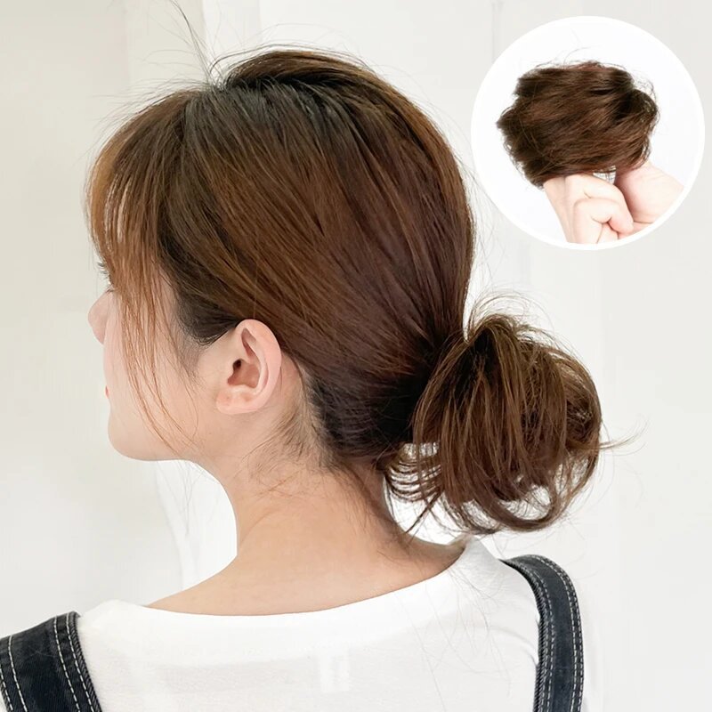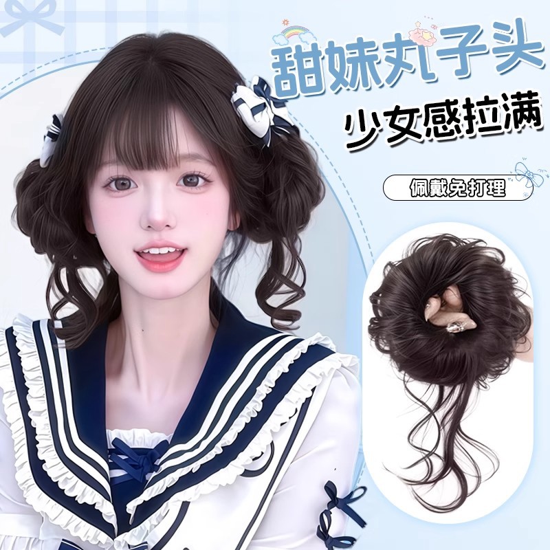 女性用ボールヘッドウィッグクリップ、自然なふわふわつぼみヘッド、編み込みヘア、後頭部ウィッグ、ヘップバーンスタイル