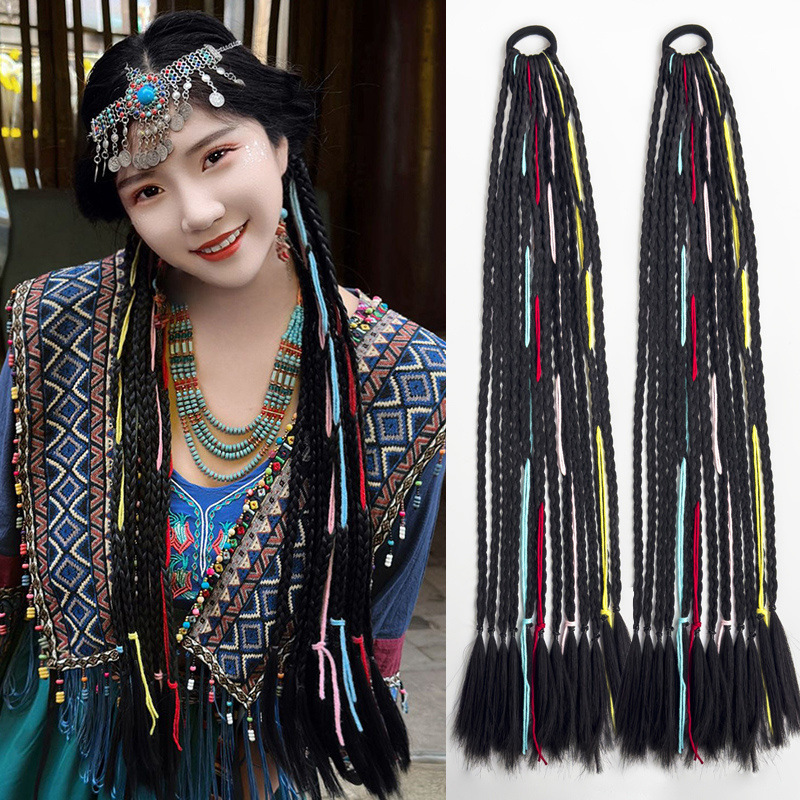 麗江写真チベット三つ編みダーティードレッドエスニックスタイル手作り三つ編みウィッグダーティードレッドカラフルなロープ細い毛糸三つ編み