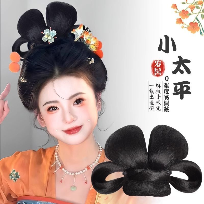 漢服小太平おだんごヘア完成品ヘアバッグ古代風かつらおだんごヘア衣装メイクオールインワンヘアコスヘッドドレス