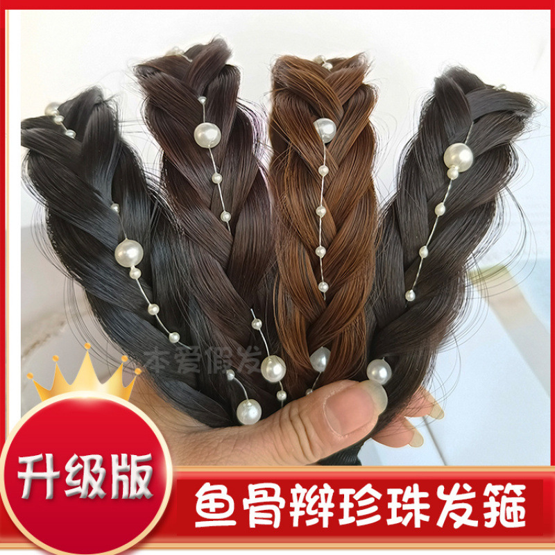 太い3連ツイストフィッシュボーン編み込みウィッグヘッドバンド、高頭頂部ヘッドバンド、ヘアピン、ネットセレブヘアアクセサリー、テクスチャードヘッドバンド