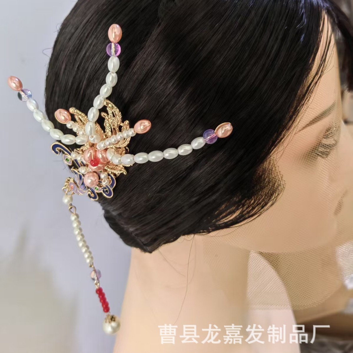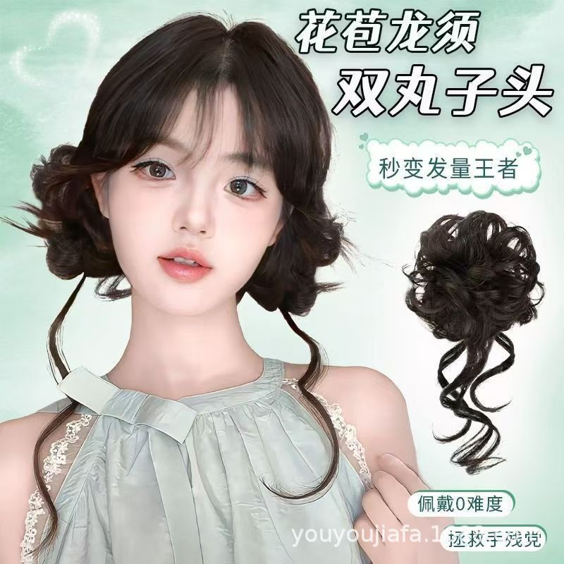 龍ひげ玉ヘアウィッグ、ヘアリング、ヘアアーティファクト、千金の花のつぼみヘアパッケージ、古代風巻き毛、ふわふわ、頭頂部が高く