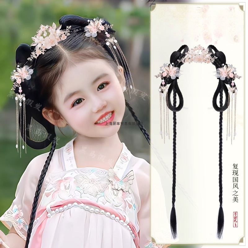 漢服子供用かつら古代スタイルオールインワン怠惰なヘアバン古代衣装女の子かわいいクリップアクセサリー 3485A