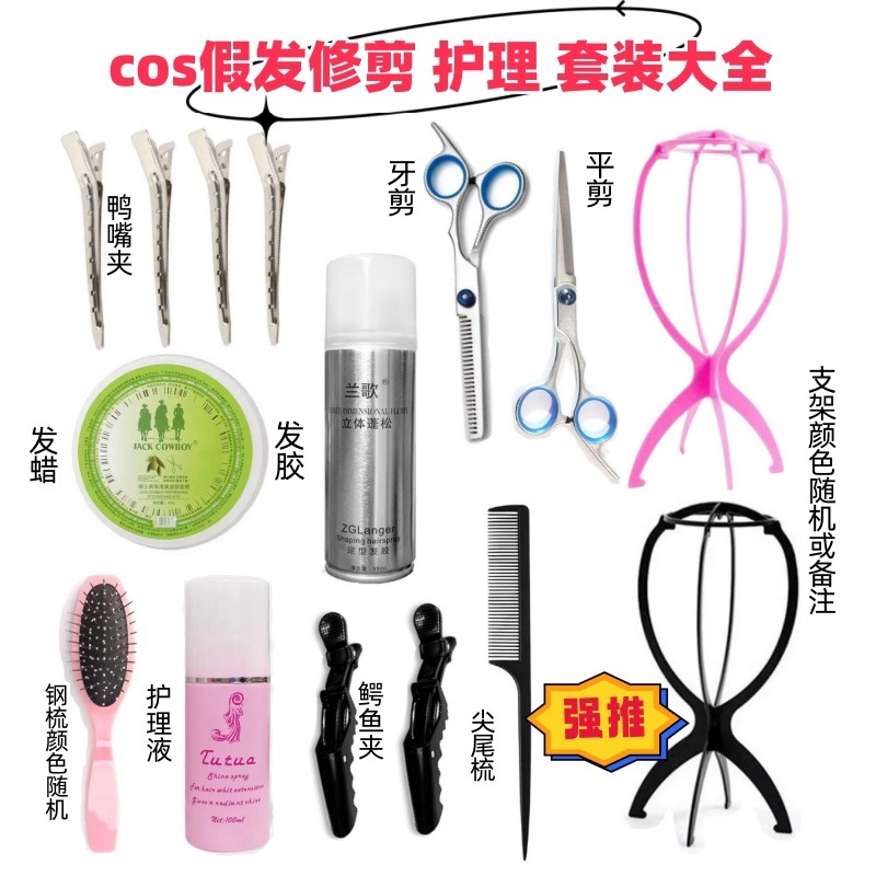 cos専用ウィッグトリミングケアツールウィッグホルダーヘアワックスヘアスプレーはさみケアソリューション帯電防止スチールコーム