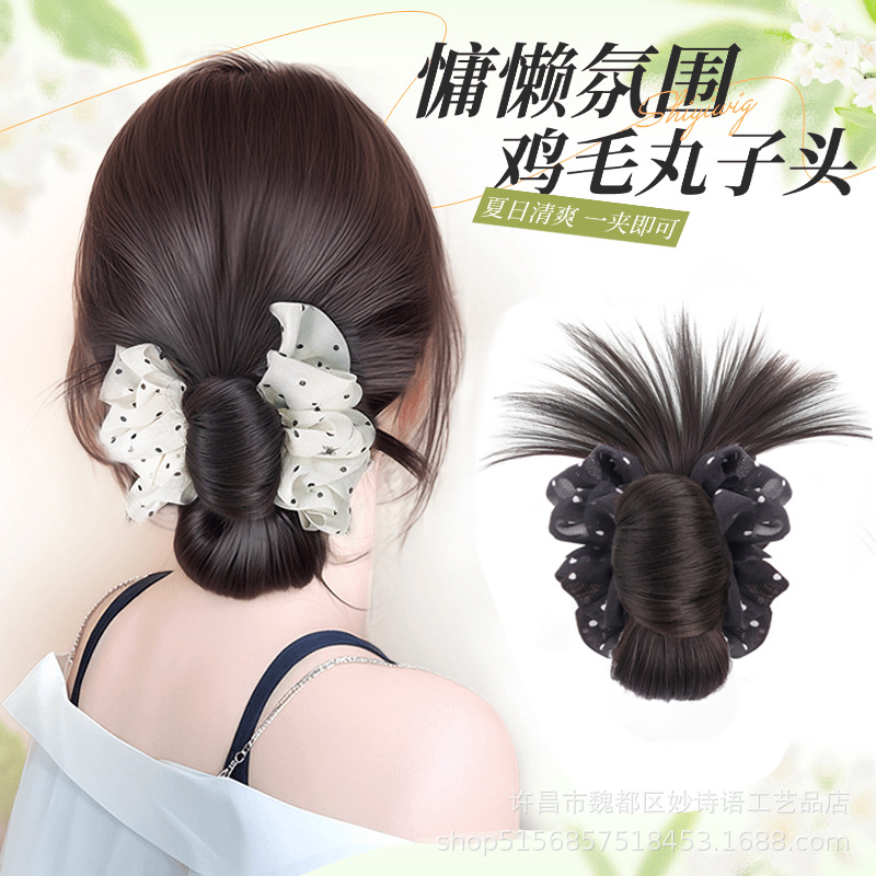 新しいスタイルのウィッグヘアバッグ、ボールヘッドグリッパー、フラワーバドスタイル、ふわふわで自然なフラワーバド、高めに結ぶことができるボールヘアアクセサリー