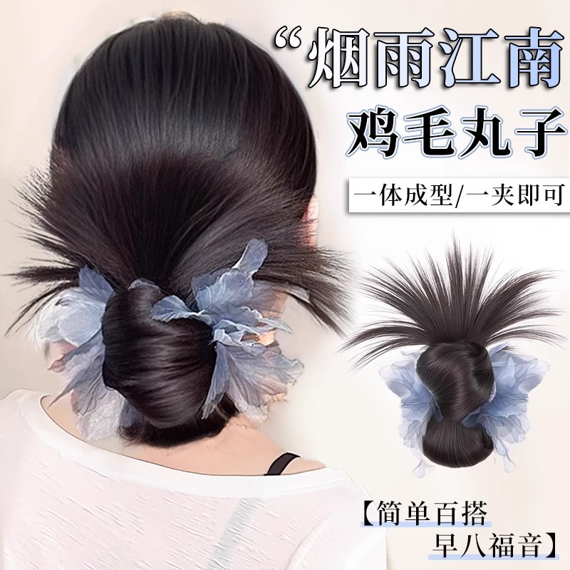 女性用龍ひげサイドミートボールヘア、優しいヘアアーティファクト、新しい中国風ヘアゴム、ふわふわ、昔ながらの風味、怠惰で自然なつぼみヘア