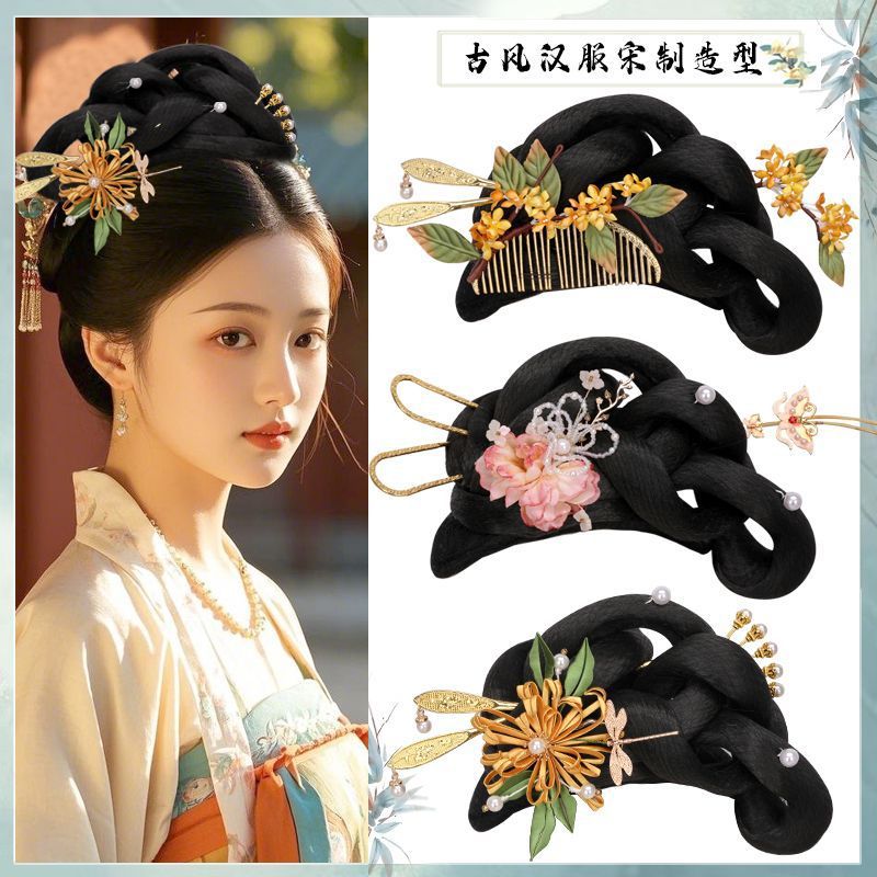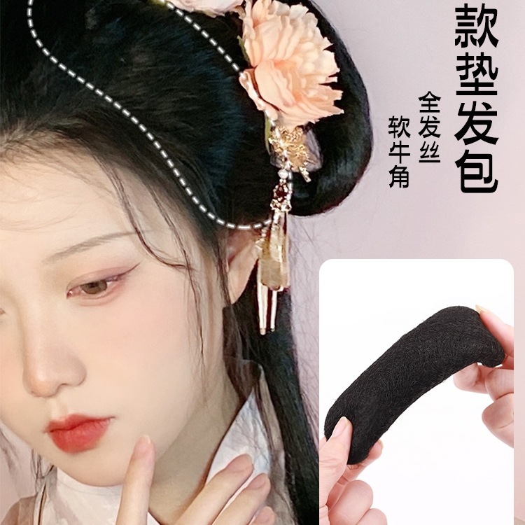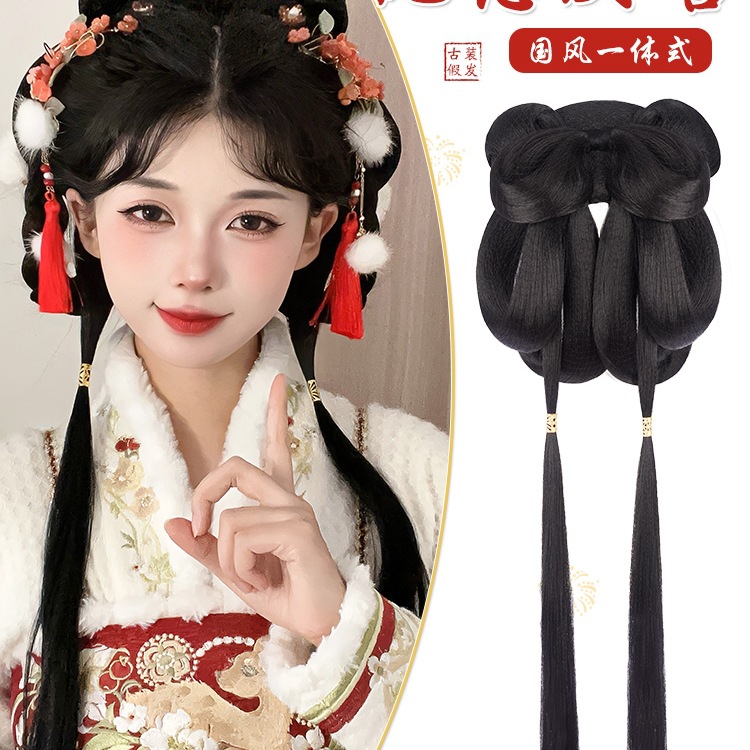 サイドコスチュームオールインワン古代風小さな明製漢服ウィッグバッグおだんごヘアスタイルスタイリストヘアデイリーパッドヘア