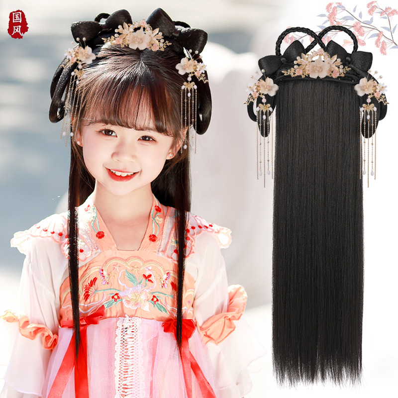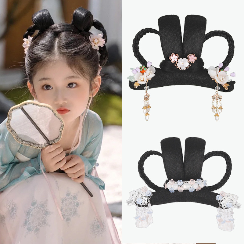 子供用ウィッグバッグ、漢服パフォーマンスオールインワンおだんごヘアバッグ、新しい古代スタイルの甘くて多用途なヘアアクセサリーコンビネーション861