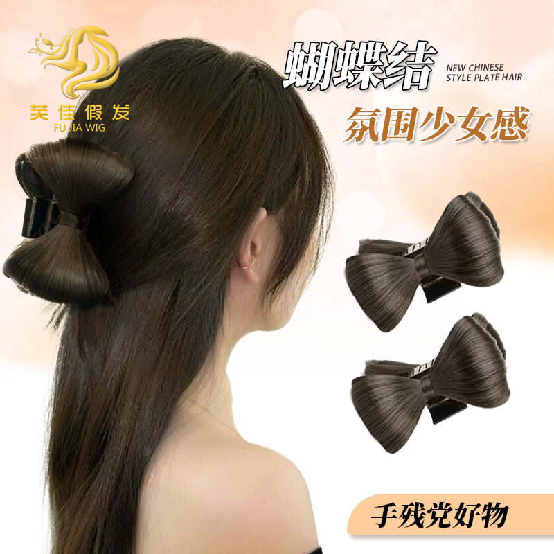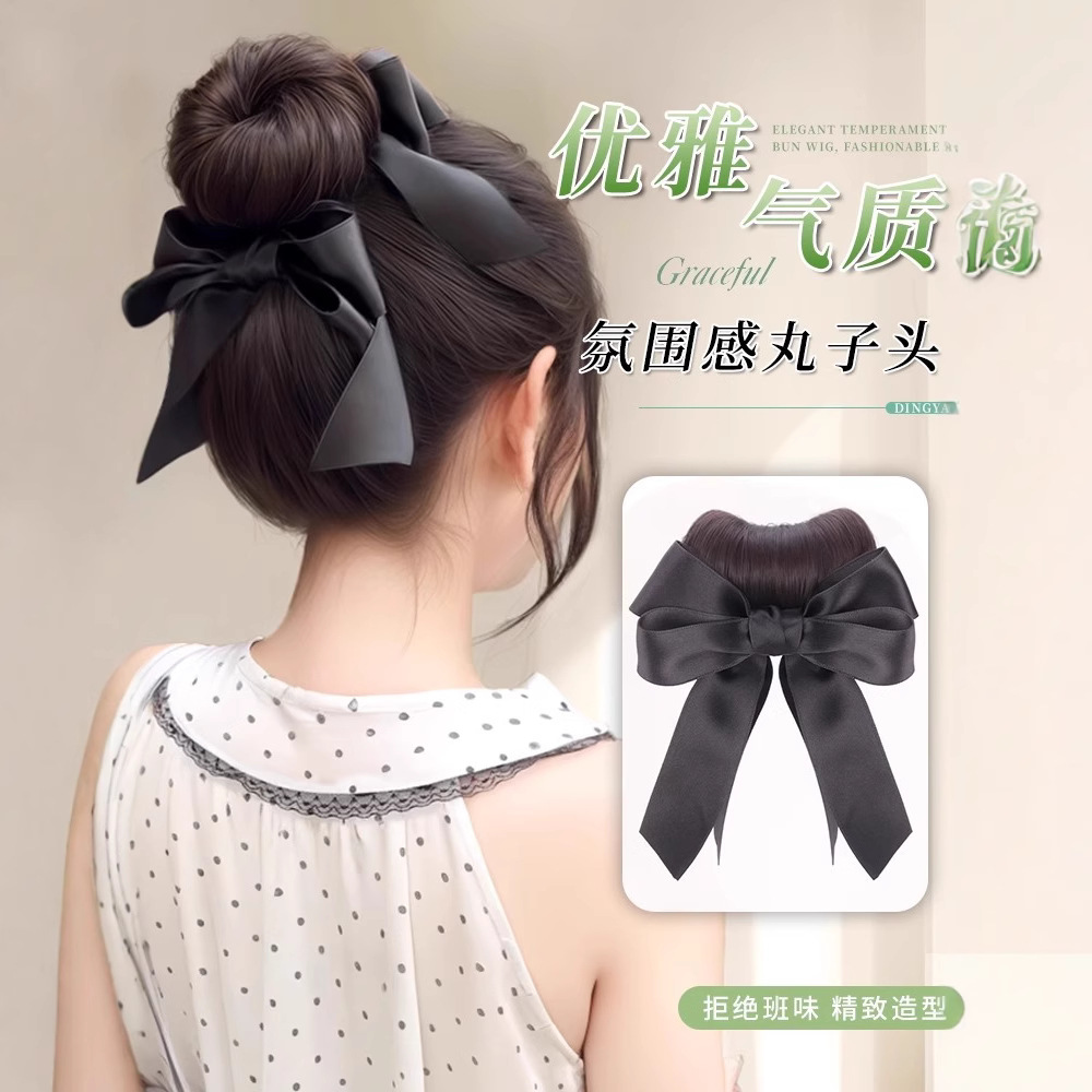 女性用ウィッグ、リボン、人工毛、高頭頂花頭、高級手作りヘアゴム、ボールヘッド