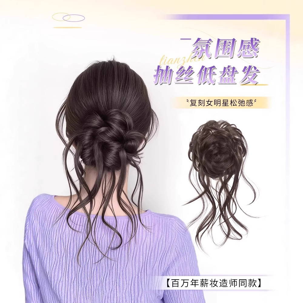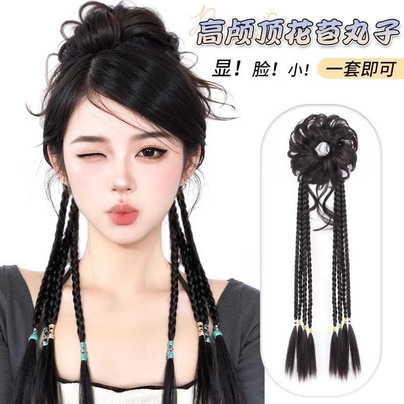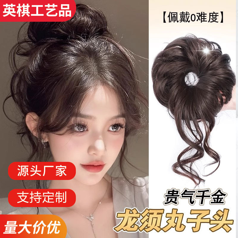 龍ひげ玉ヘアウィッグ、ヘアゴム、自然ふわふわ人工毛、低結び髪、花のつぼみヘア、高頭頂ヘアパッケージ