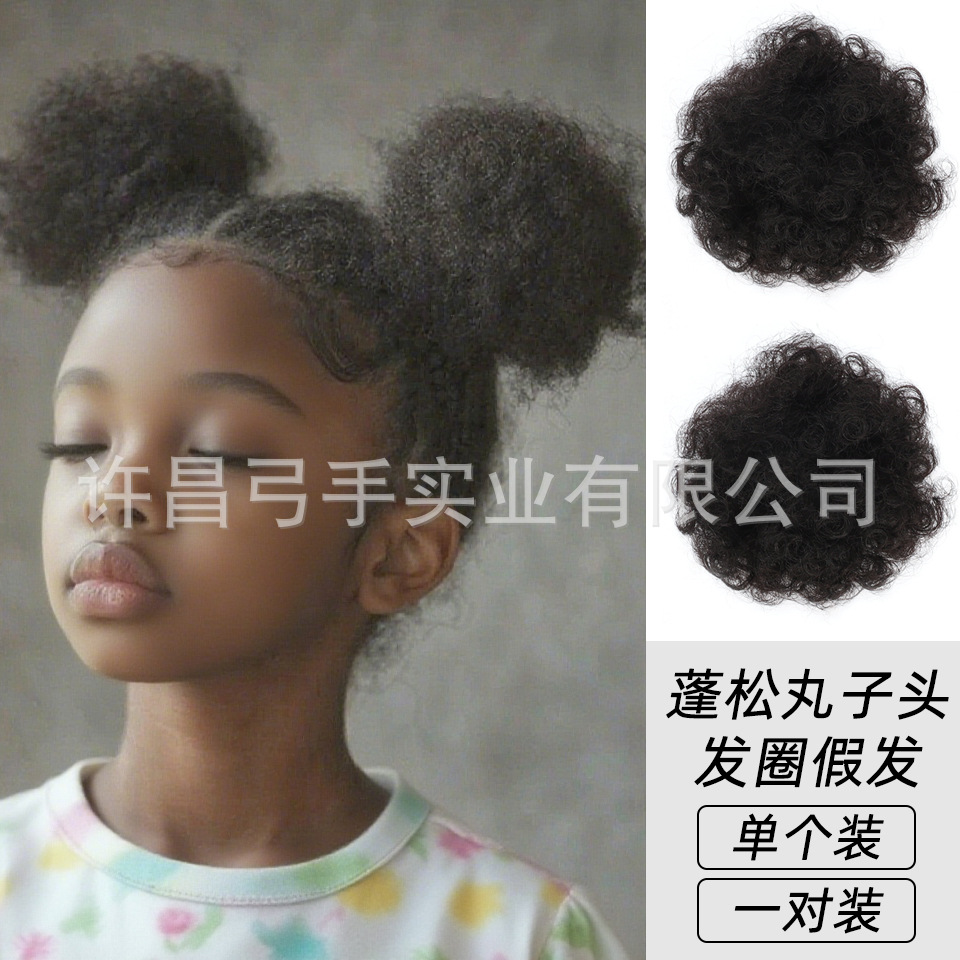 国境を越えた売れ筋の子供用ふわふわ化学繊維ウィッグヘアバッグ、アフリカのふわふわヘアバッグ、小さなカーリーバンドで固定