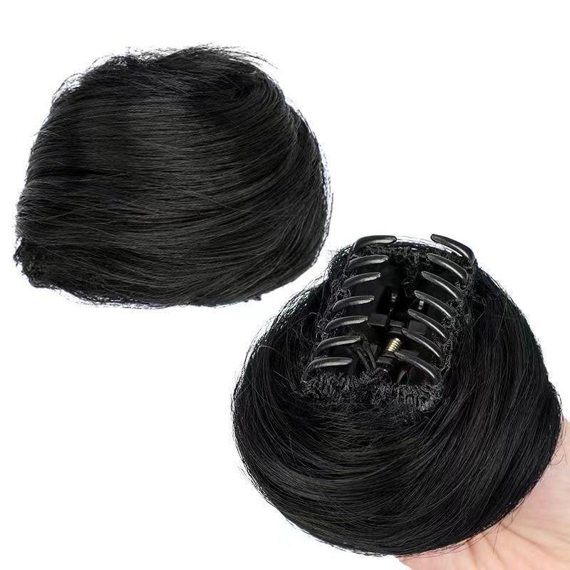 龍ひげ玉ヘアウィッグ、自然なふわふわ人工毛、つぼみヘア、低結びヘア、怠け者用ウィッグバッグ