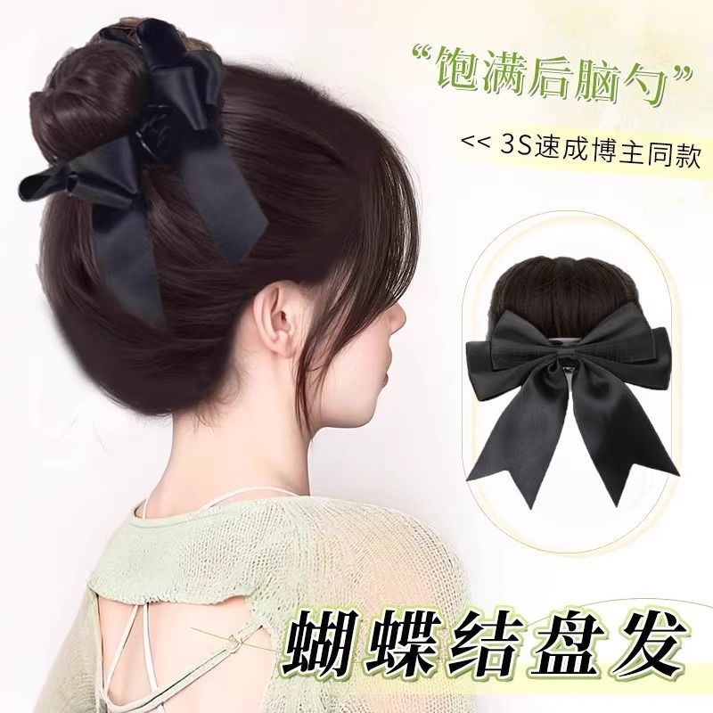 汉服假发古风一体式蝴蝶结发包盘发造型全套头饰发髻古装明制垫发