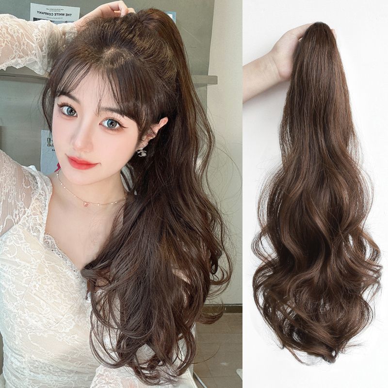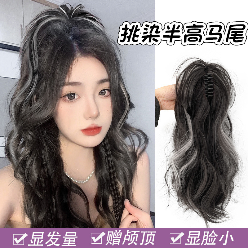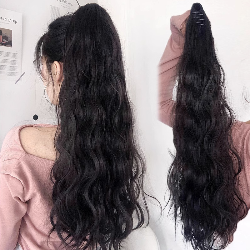 ポニーテール女性のナチュラル人工毛ロングヘアクリップ水の波紋ハイポニーテールふわふわインターネット有名人三つ編みオールインワン巻き毛ポニーテール