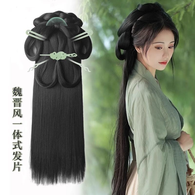 漢服ウィッグオールインワン女性古代風ヘアクリップスタイル古代衣装ウィッグバッグ頭飾りYmaiその他