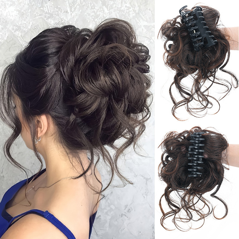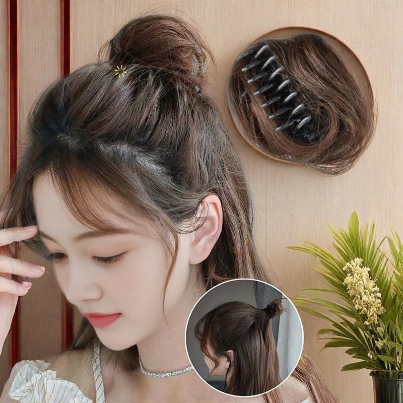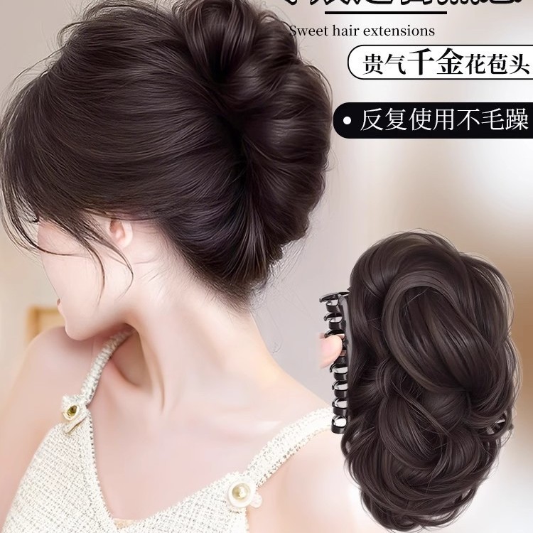 女性用ヘアクリップ付きボールヘッドウィッグ、ヘアパック、花のつぼみヘア、増毛、後頭部の高級パッドヘアパック、ヘアゴム