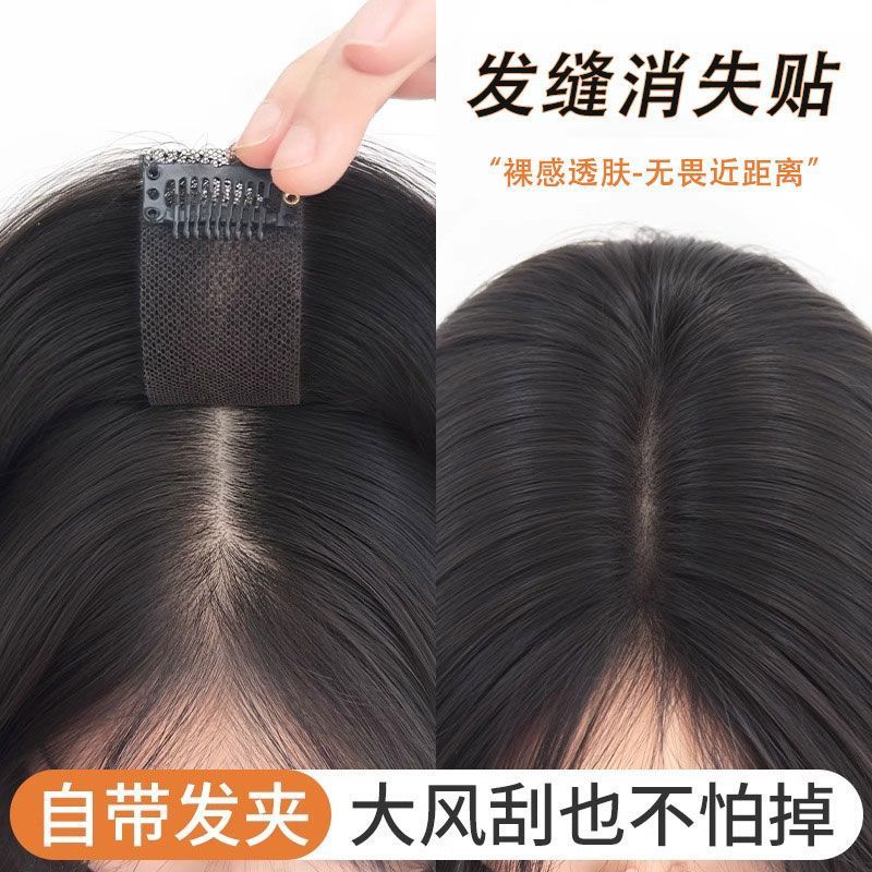 女性用エッジレスかつら、頭頂部の交換用ヘアピース、白髪をカバーするヘアピース、薄いヘアピース