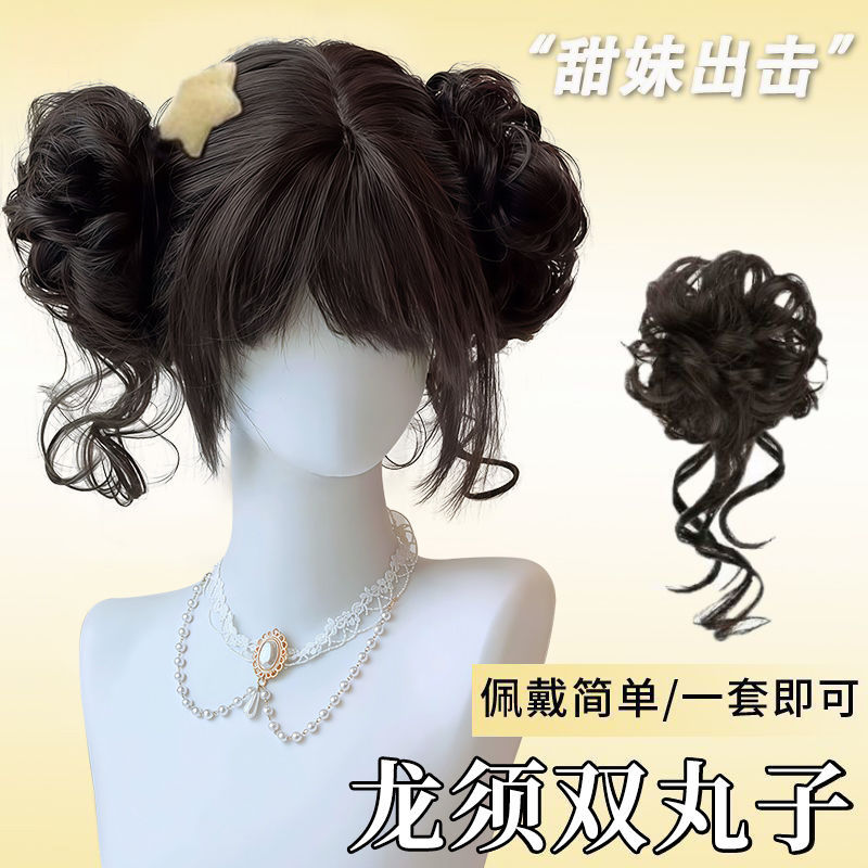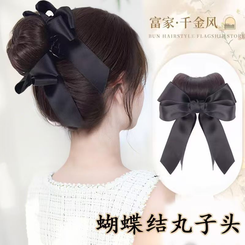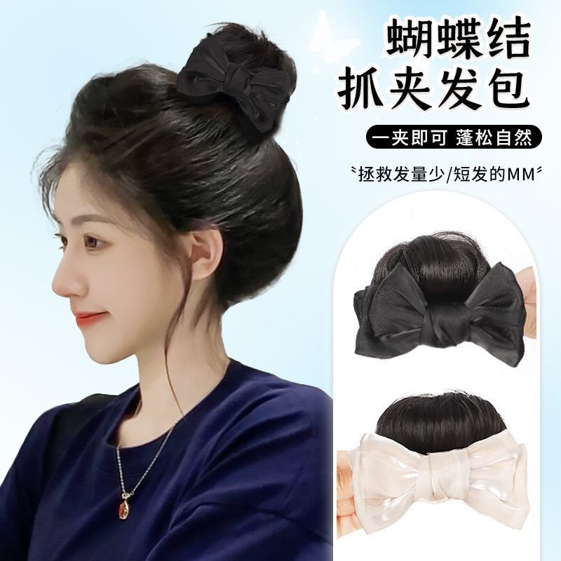 女性用リボンウィッグ、ボールヘッド、ヘアクリップ、ヘアバッグ、増量人工毛、ふわふわ高頭蓋、つぼみヘアアーティファクト