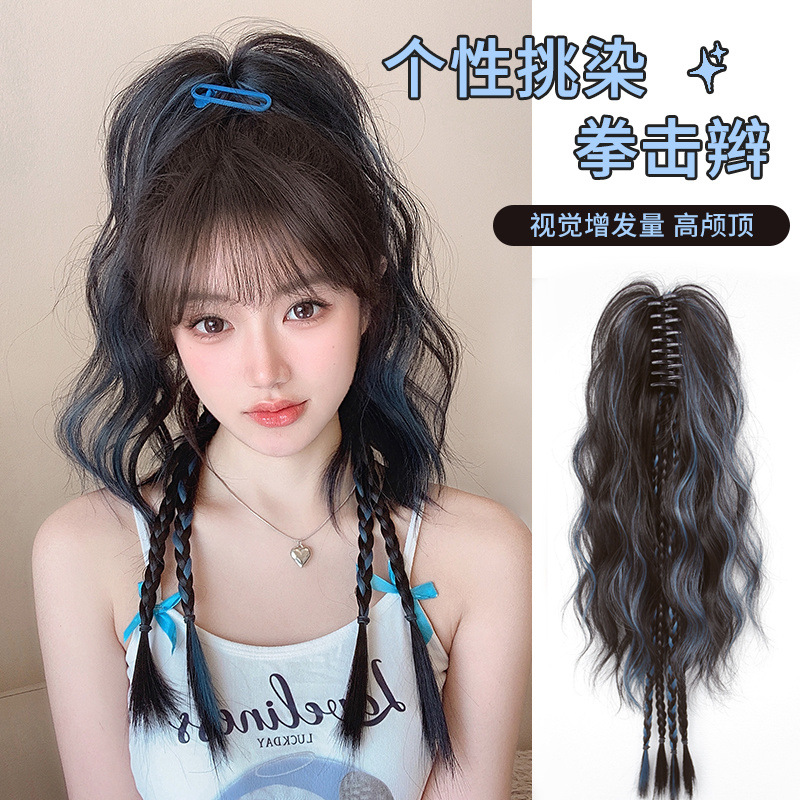 ボクシング三つ編み女性用クリップオンファウンテンハイポニーテールカラーリングボクシング三つ編みシミュレーションハーフタイホットガール多用途三つ編み