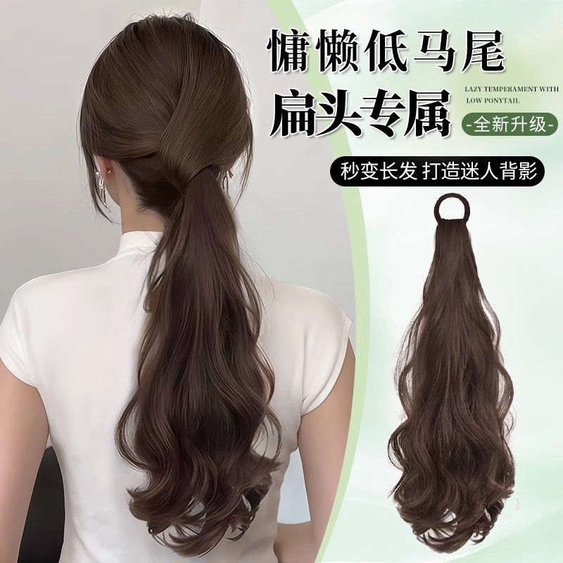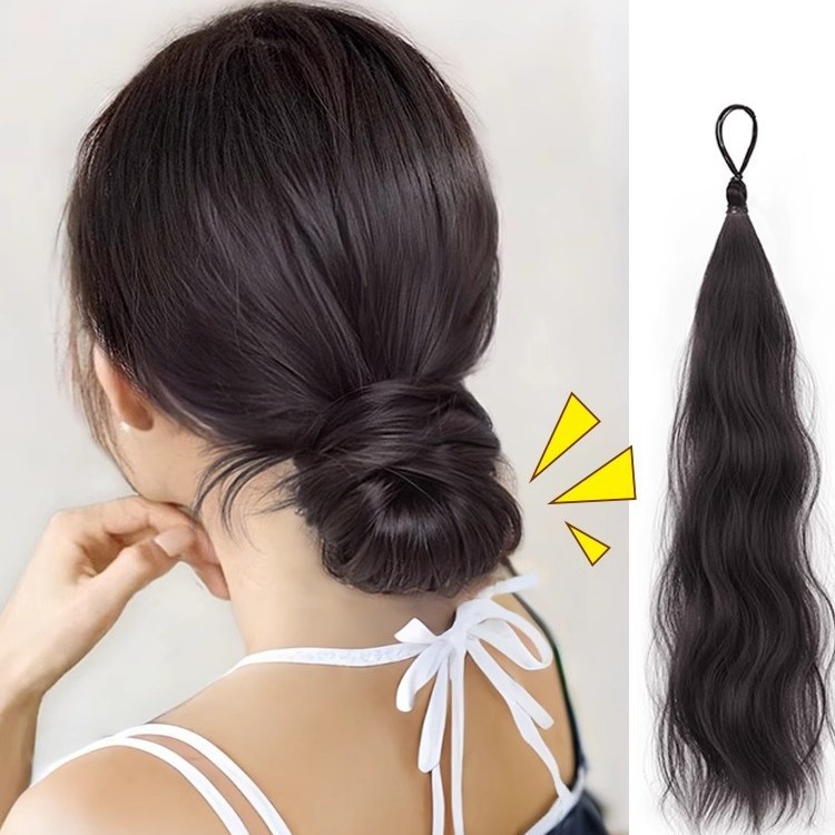 女性用巻き付け式低結びセルフ巻きヘアバンドルポニーテール、人工毛、ボールヘッド、ふわふわ増毛ツール
