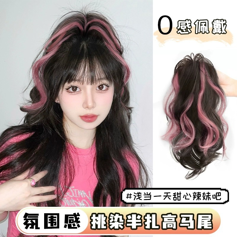 ロングヘアの女性用ウィッグ、人工毛、カラーリングされたポニーテール、甘くてクールなクリップオンハーフタイハイポニーテールホットガールブレード