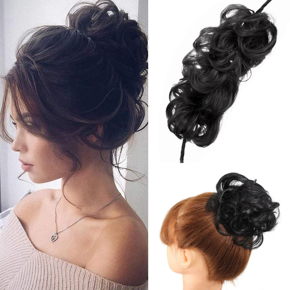 女性用ボールヘッドウィッグ、ヘアバンド、ヘアバッグ、古代スタイルの漢服、古代衣装のおだんごヘア、ふわふわ、怠惰な自然、完全な本物の髪の帽子