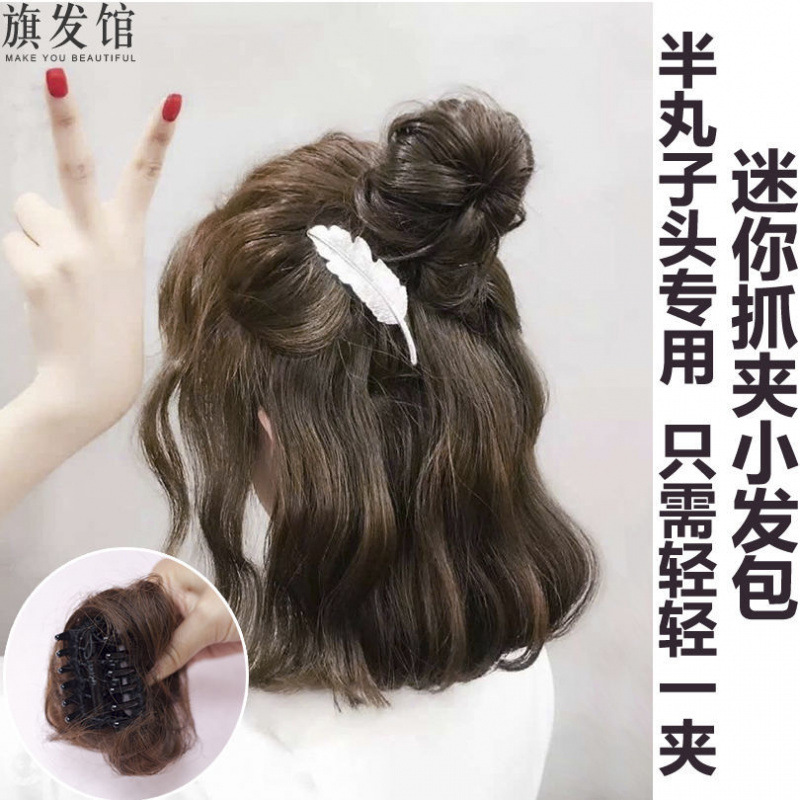 女性用小型丸頭ウィッグ、小さなウィッグ、ヘアゴム、半丸ヘアアクセサリー、怠け者の個性ヘアスタイラー